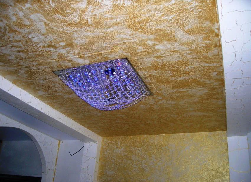 Если вы приняли решение оформить свой потолок подобным образом, необходимо приобрести подходящую для таких работ смесь. Есть два варианта смесей: готовые к использованию, продающиеся в больших пластиковых емкостях или сухие, требующие разведения водой. Как несложно догадаться, готовые растворы будут стоить существенно дороже, а сухие – дешевле.