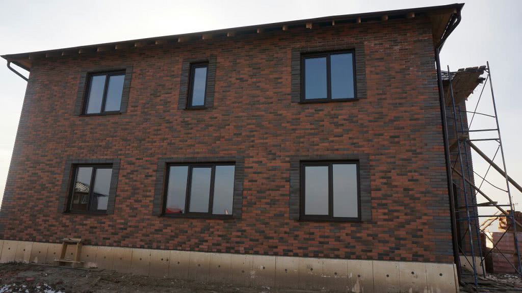 Отделка цоколя дома из красного кирпича выполняется влагостойкими, устойчивыми к температурным перепадам и другим внешним воздействиям материалами: