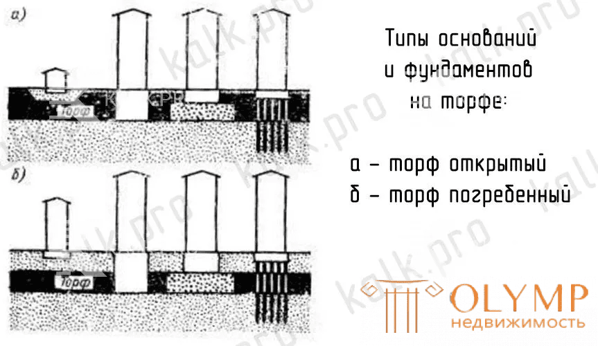 Нельзя возводить фундамент с непосредственным опиранием его на сильнозаторфованные грунты, торфы, сапропели и ил.