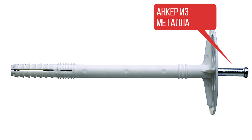 Как вывод: такие грибки используют в случае крепления тяжелых утеплителей, когда использование пластиковых невозможно.