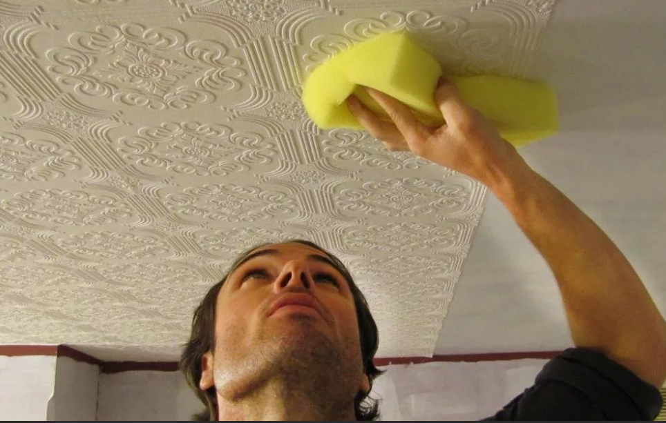 В первую очередь необходимо тщательно очистить потолок от пыли, фрагментов старого ремонта, шатающихся кусков шпаклевки и тому подобных ненадежных элементов, способных помешать нормальному склеиванию плитки и потолка. Есть перечень критериев, соответствие которым поможет приклеить плитку к потолку даже в том случае, если клей – самодельный.