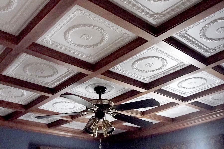 Плитка на потолок представляет собой квадратные элементы с лицевой, оборотной стороной. В процессе накладки красивых плит необходимо проводить правильную фиксации. Если пренебрегается этот момент, то рисунок не получится ровным, красивым. Сначала следует выбрать рисунок, потом ему следовать.