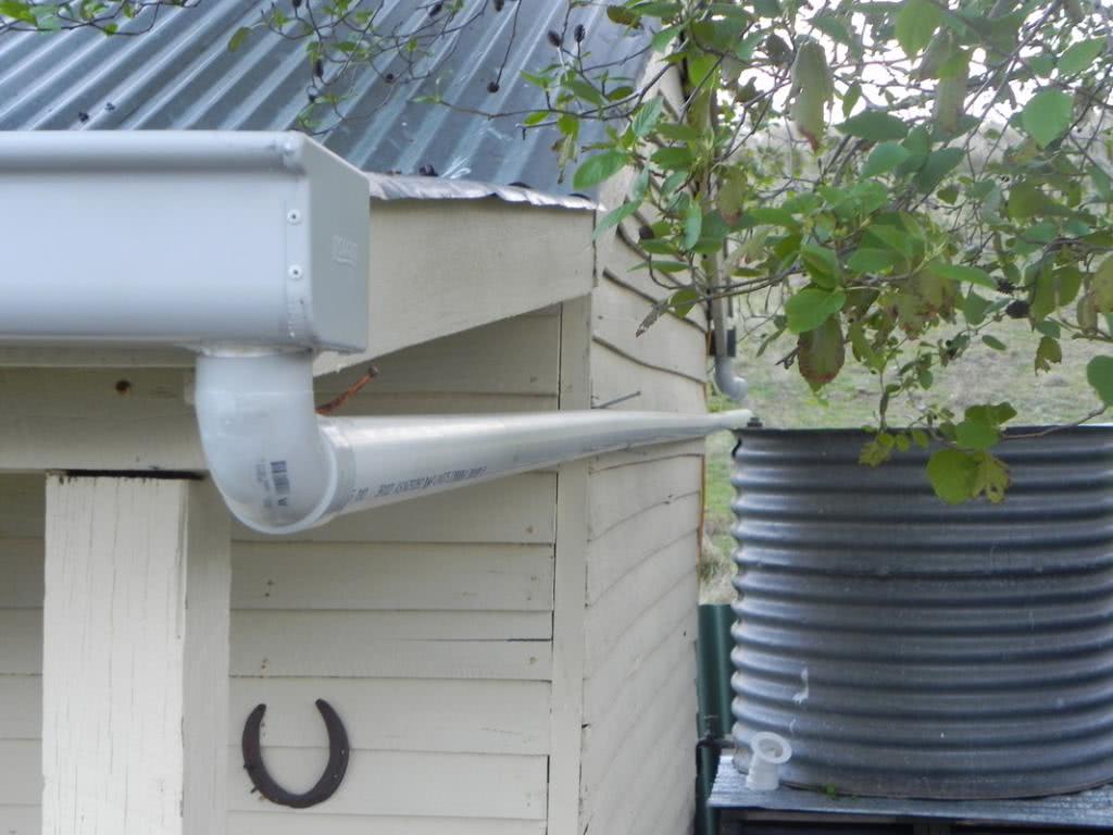 Так же, важный момент – воронка крепится к желобу в котором делается отверстие для слива. Для того, чтобы сделать отвод от воронки к трубе, которая крепится на стене на расстоянии 30 -80 см используется два колена трубы и соединительная труба. Труба удлиняет отвод и имеет длину 1м. Наклон отвода – 60°.