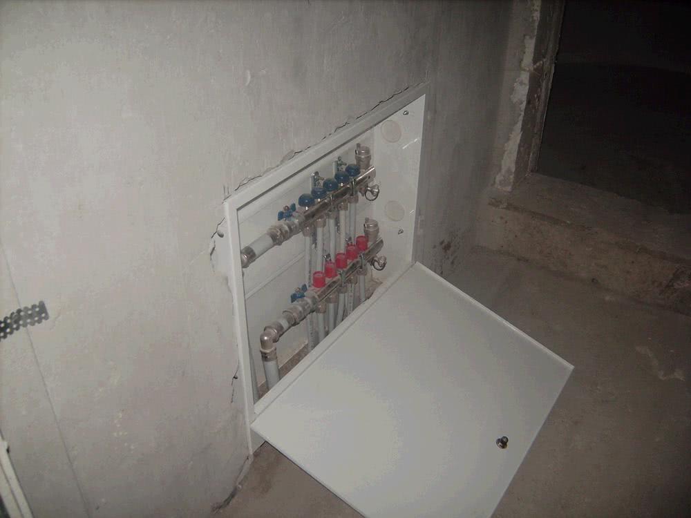 Если углубление произведено при строительстве, затруднений с установкой не будет. Планируя теплый пол и выполняя монтаж шкафа осуществляют следующие действия:
