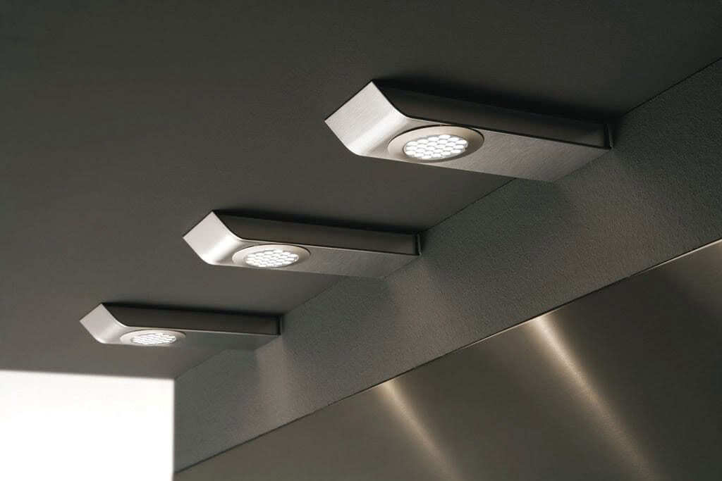 В качестве альтернативы традиционной лампе можно использовать встроенные светильники. В этом случае вы сэкономите еще больше пространства. Однако этот вариант больше подходит для мебели под заказ. Также их можно вмонтировать в боковые стойки столешницы