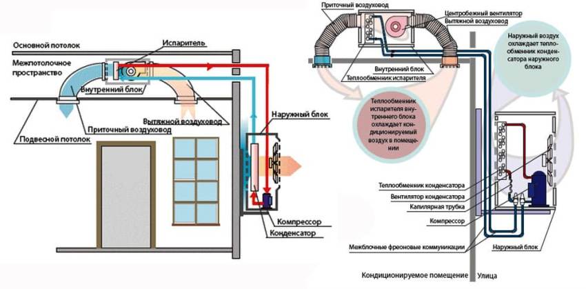 - через испаритель также проходят потоки теплого воздуха из помещения, они отдают тепло фреону и охлаждаются;