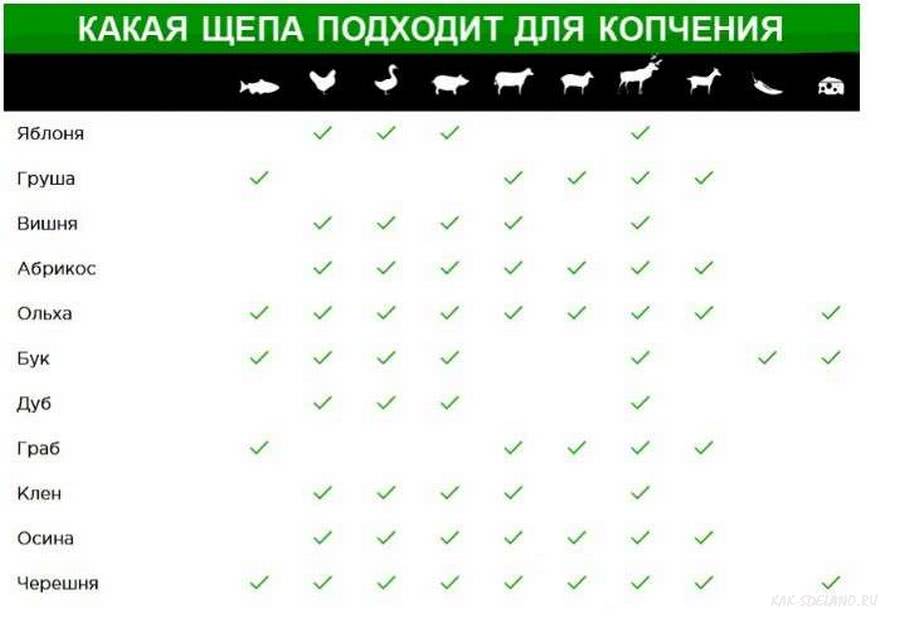 От состава щепы во многом зависит вкус и запах конечного продукта. Разнообразное готовое сырье для копчения продается в магазинах, но приготовить дрова можно самостоятельно.