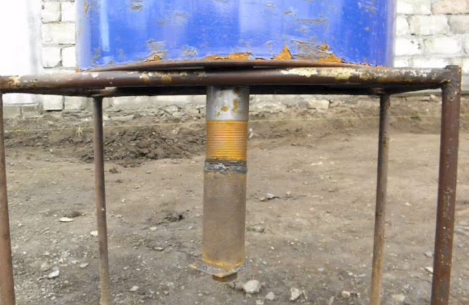 Длина трубы зависит от подставки, на которой будет размещена бочка — около 30-40 сантиметров