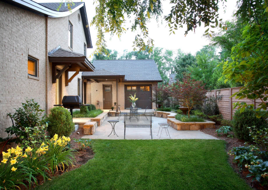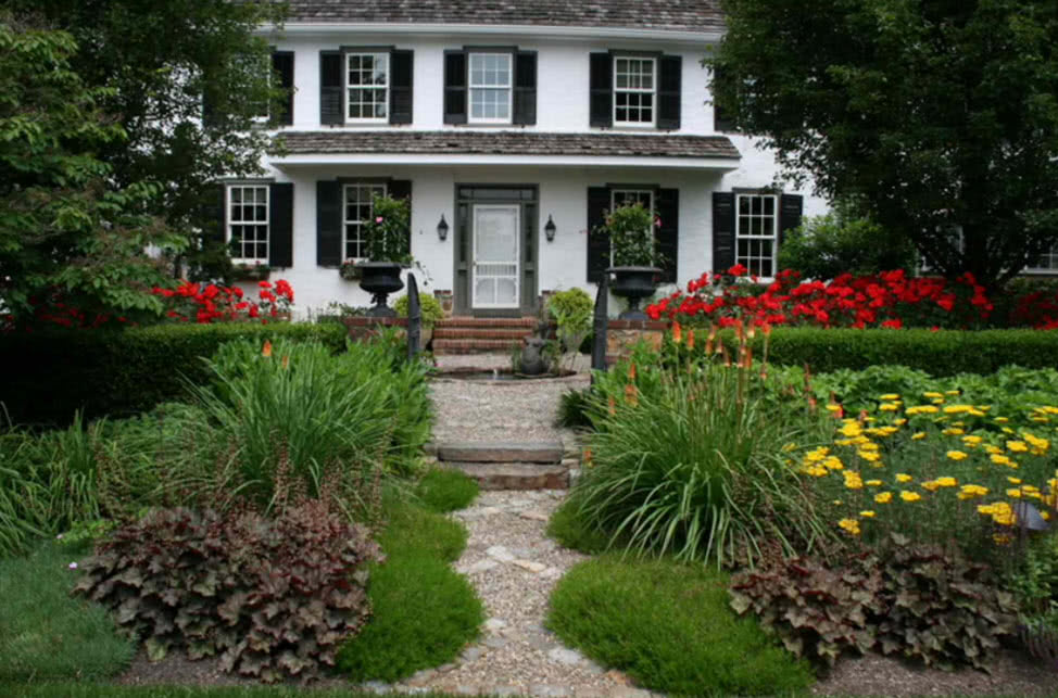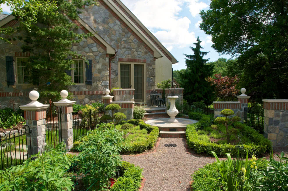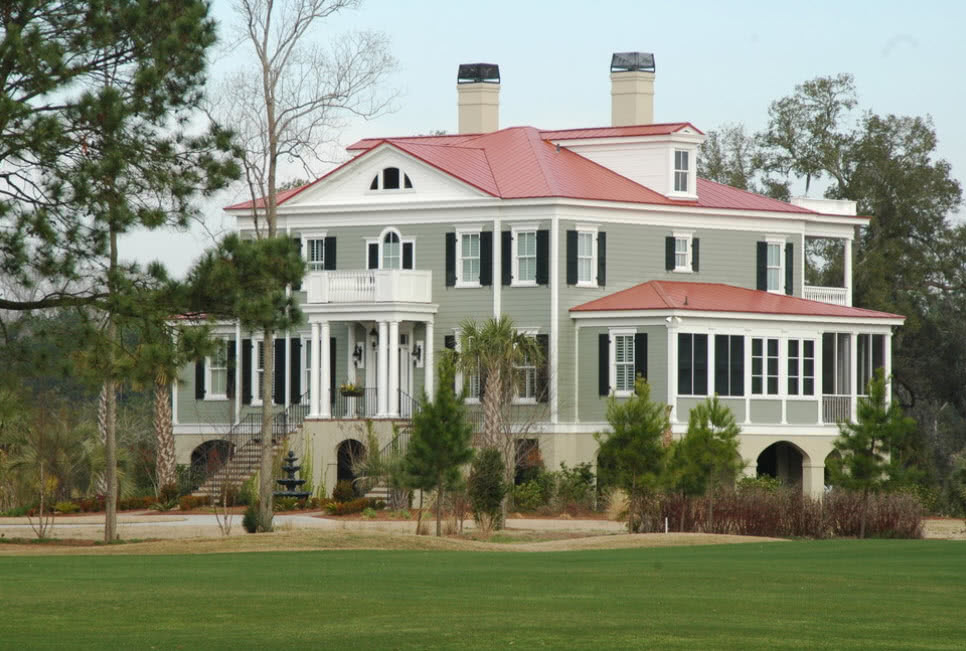 Лучше всего обратить внимание на бежевый, белый и светло-зеленый оттенки, а также приближенные к ним тона. Стоит отметить, что дом в стиле кантри максимально сближает с природой, идеально будет сочетаться с ландшафтом.