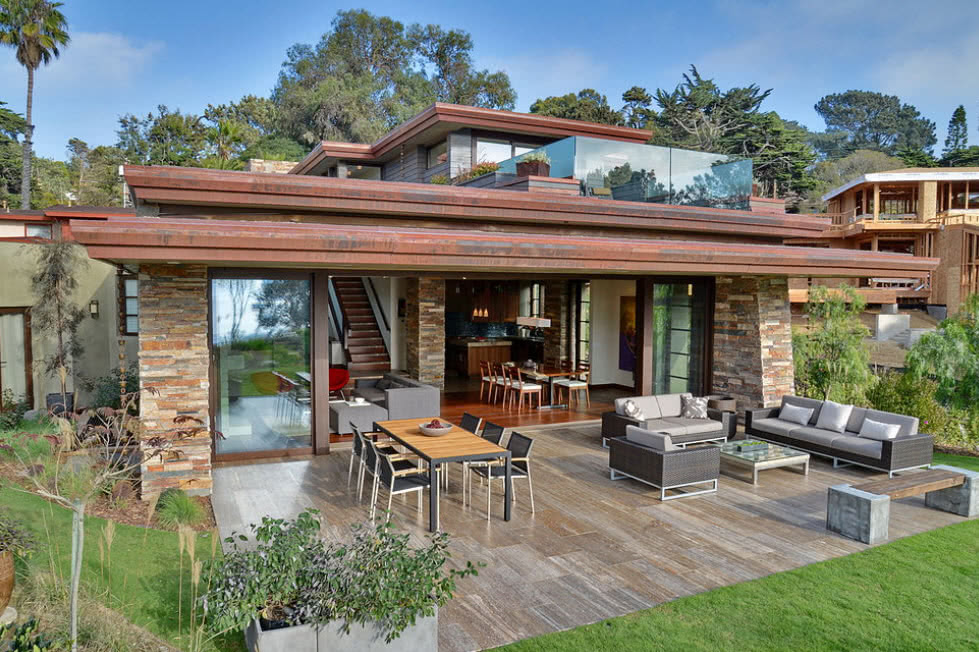Из примеров стоит выделить терракотовую черепицу – она отлично сочетается с фасадом из натуральной древесины или кирпича.