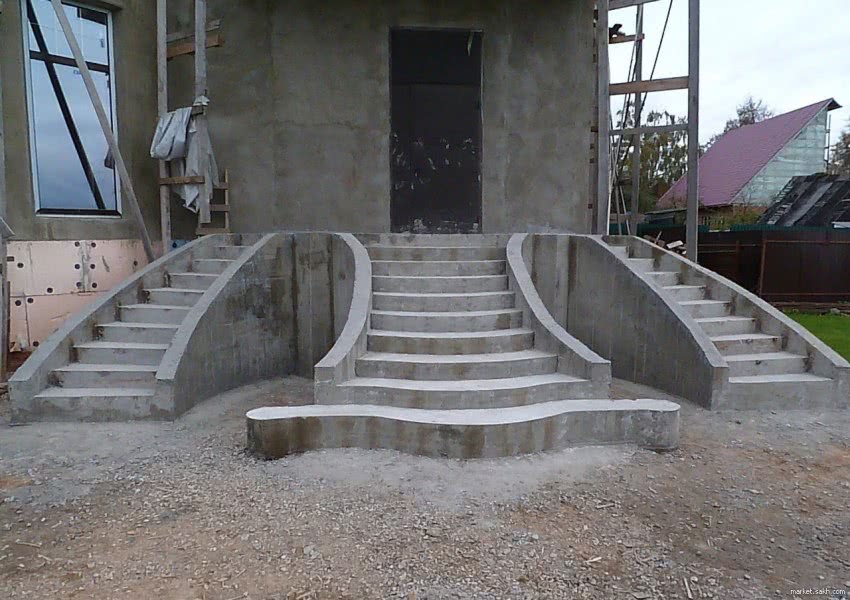 В большинстве случаев крыльцо представляет собой лишь несколько ступеней и навес над ними. Бетонная конструкция в этом случае будет самой надежной и прослужит долгие годы. Чтобы построить такой вариант необходимо выполнить несколько обязательных шагов: