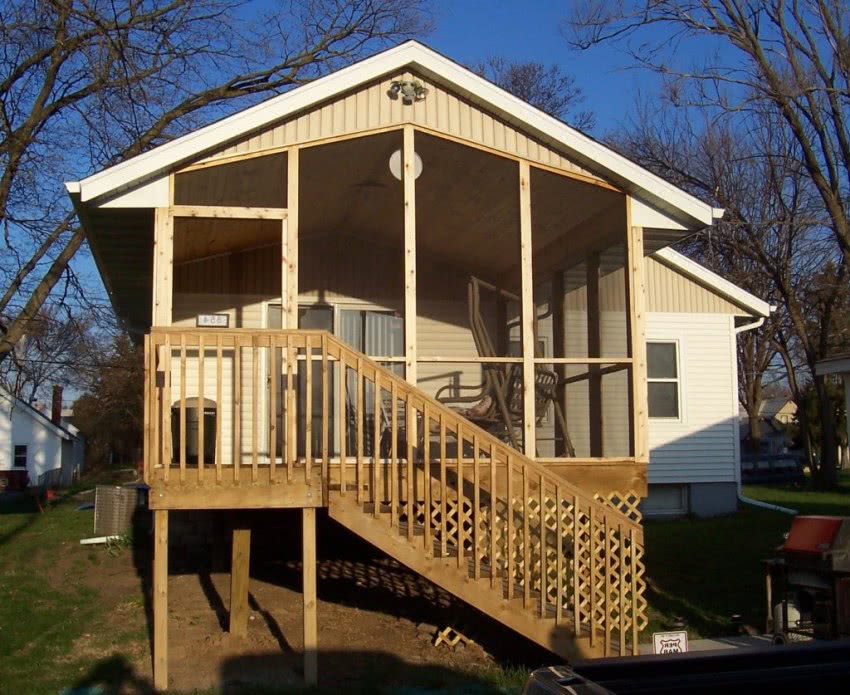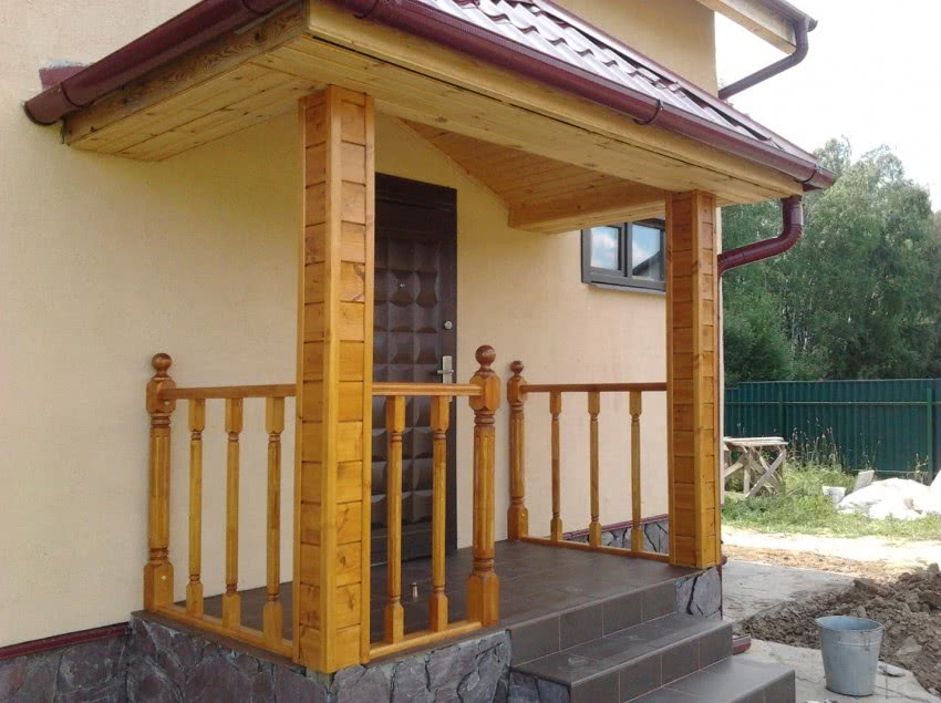 Деревянное крыльцо частного дома. Фото каркасной конструкции