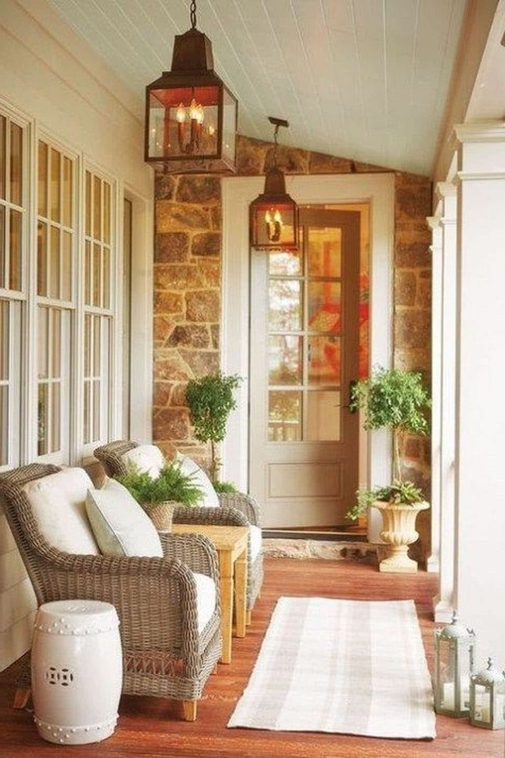 Часто, если позволяет площадь, устанавливают небольшие креслица и сетчатые стулья. Осенью крылечко декорируется собранным урожаем.