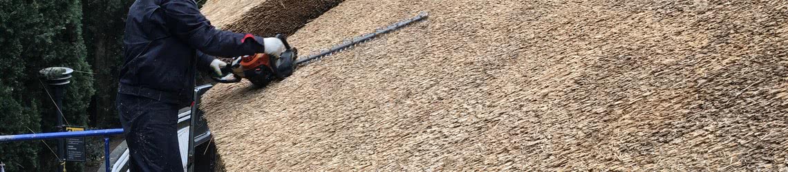 При подобающем уходе за камышовой кровлей и строгом её обустройстве ремонт, как правило, не понадобится долгое время. Возможно, лишь устранение текущих неполадок на небольшом участке из-за использования некачественного, или подготовленного с нарушениями сырья. Это выясняется при визуальном периодическом осмотре. Прогнившие стебли меняют на всю глубину вплоть до основания, иначе велика вероятность распространения бактерий вглубь и вширь и толку тогда от поверхностного ремонта будет мало.