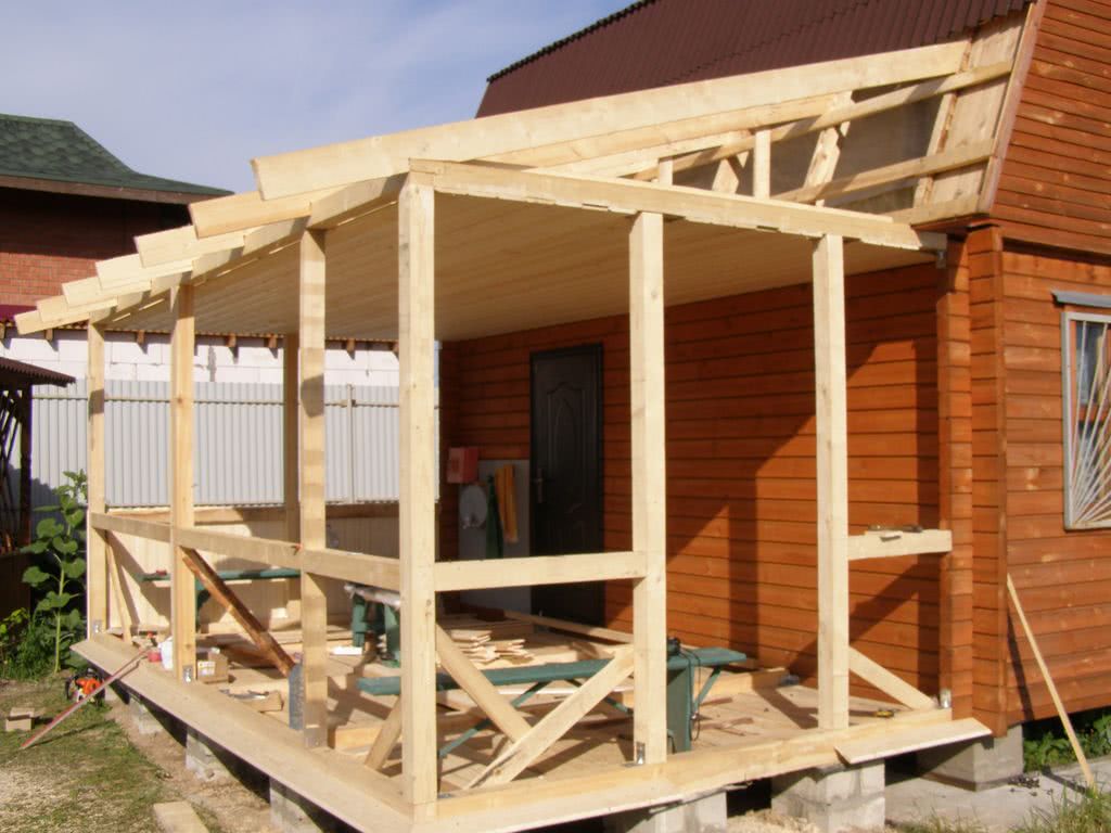 Постройка веранды к дому своими руками идет по следующему плану (строим из древесины):