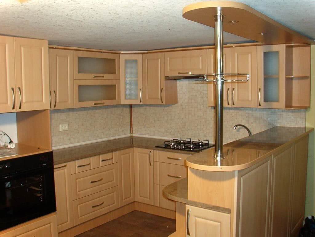 - Выбор дизайна. Для маленькой кухни подойдет столешница округлой формы. Острые углы в тесном помещении могут стать причиной травм.