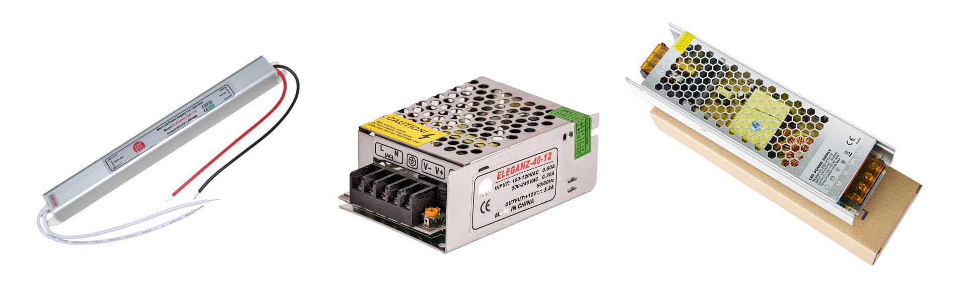 - Сетевой блок питания не требует монтажа. Недостаток в том, что мощность устройств небольшая, поэтому для каждой ленты потребуется использование отдельного трансформатора.