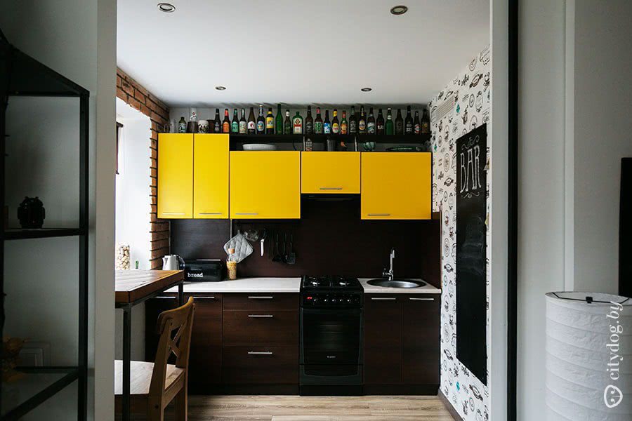 Также примечательно в таком дизайне отсутствие антресолей вообще. Вместо них можно соорудить полки.