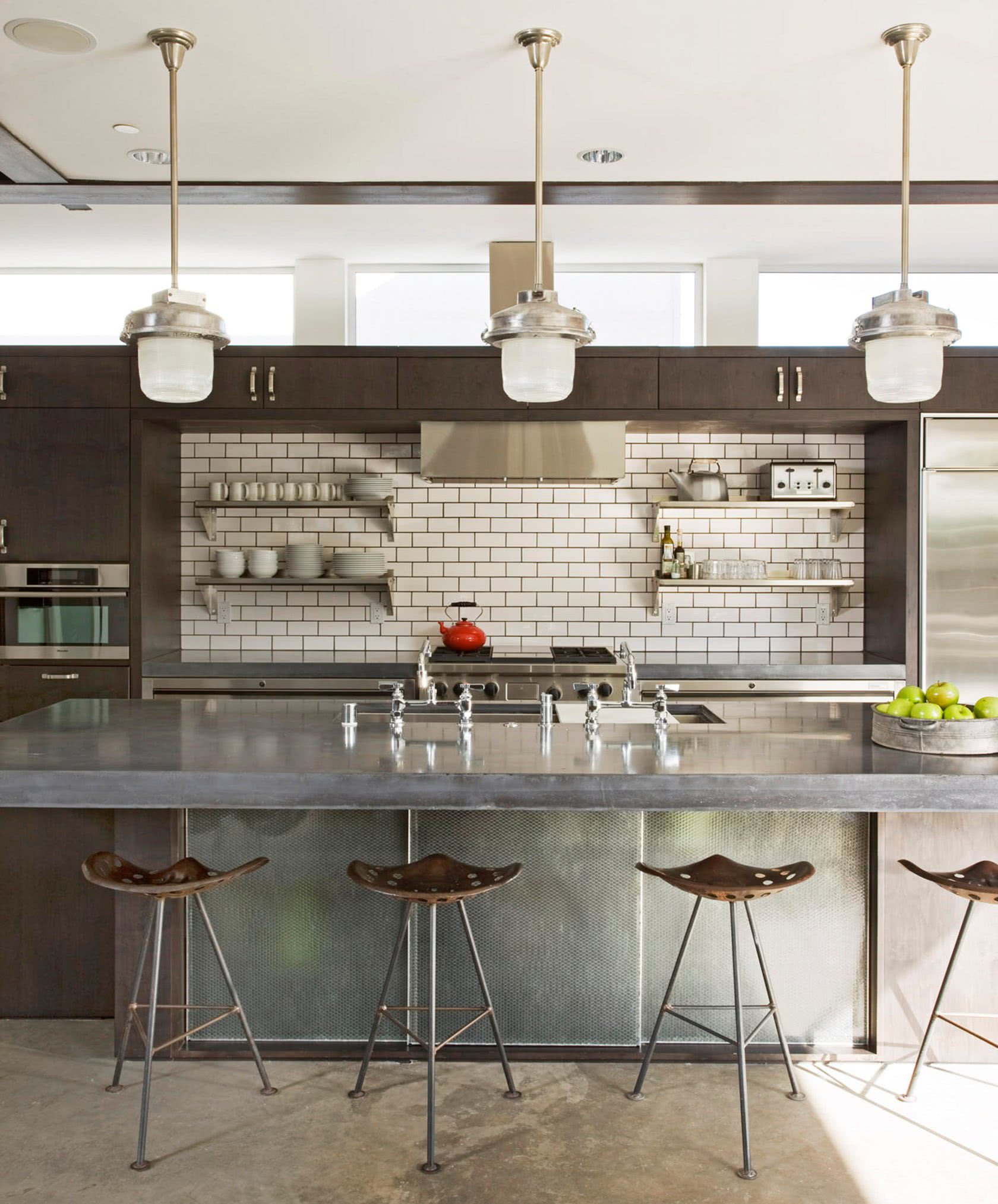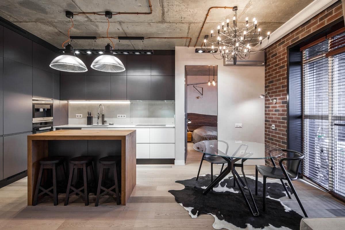 Кухонное пространство в стиле лофт – это всегда несколько различных источников света