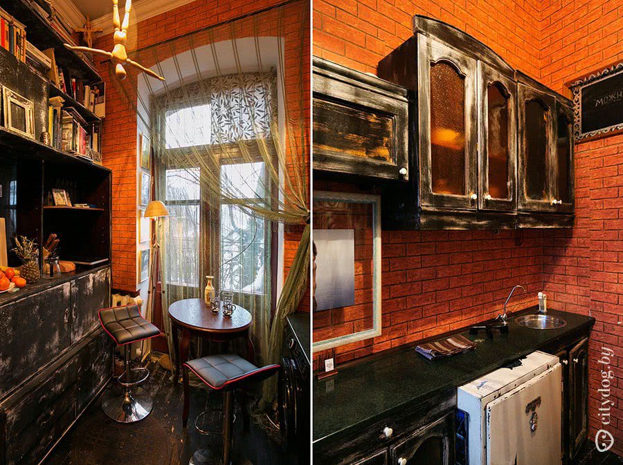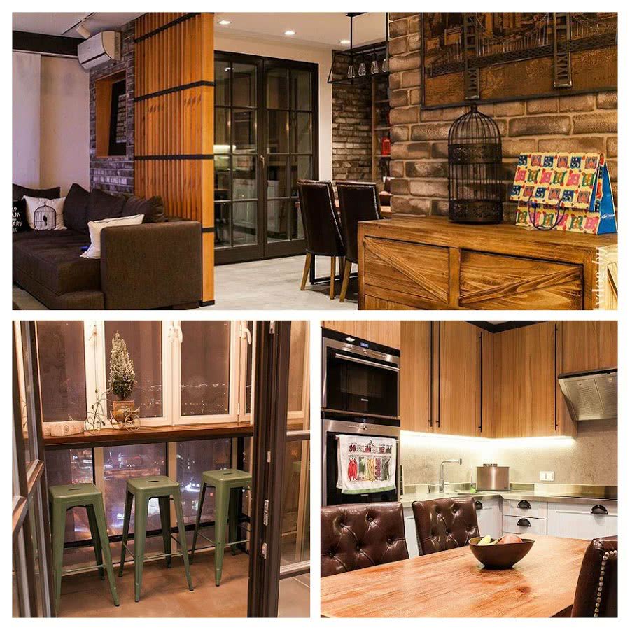 Если кухня имеет небольшую площадь, а хочется оформить ее в модном стиле, то есть вариант выгодного объединения с лоджией – площадь значительно увеличится, а заодно будет больше света. Более правдоподобно смотрится объединенная кухня с гостиной – именно это сочетание создает иллюзию промышленного помещения.