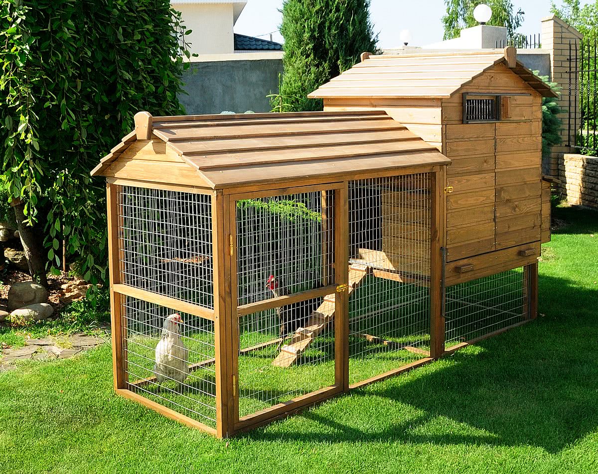 Это простое помещение, закрытое от непогоды, палящих лучей солнца и ветра. С помощью сетки в его нижней расширенной части устроен выгул, чтобы птицы могли выйти наружу и проветрится. Вверху находится жилая комнатка, в которую куры попадают по сходням.