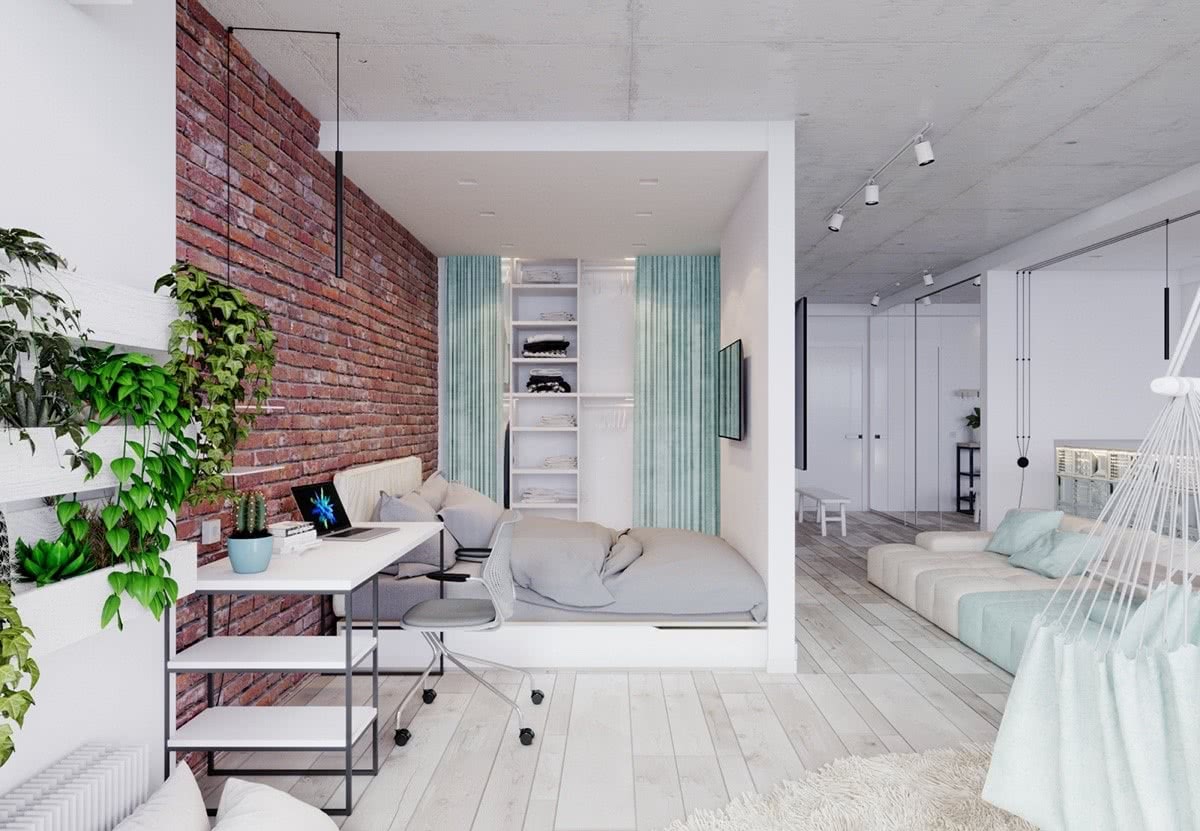 Если же площадь располагает, лучше обустроить отдельную зону спальни с полноценной кроватью. Часто ее ставят в нишах, уже существующих или специально созданных, на подиумах, прячут за ширмами, шторами, полками и шкафами – все для того, чтобы создать уединенную уютную зону.