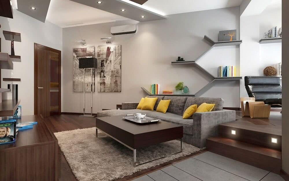 В этом случае зонирование не нужно. Достаточно освободить комнату и сделать ее просторнее. Кроме этого, рекомендуется наполнить комнату искусственным светом. Для минимализма подходят точечные светильники. Они вообще не занимают места и дают ровный дневной свет.