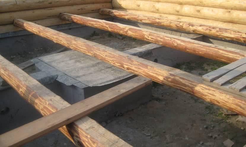 Иногда используют даже бревна или кругляк, который с одной стороны обтёсывают до ровной поверхности, на которую в дальнейшем укладывают контробрешетку под половые доски.