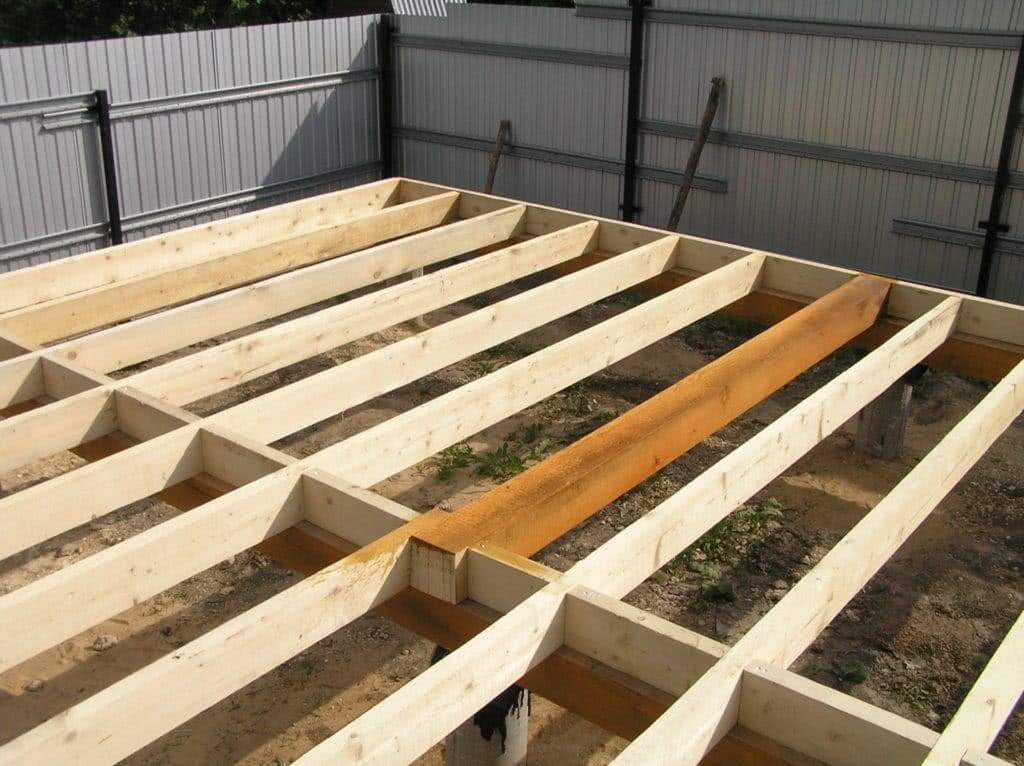 - в структуру включаются лаги – поперечные балки, позволяющие выполнить настил будущего напольного покрытия. Лаги фиксируются в сделанные вручную прорези или фиксируются крепежными элементами;