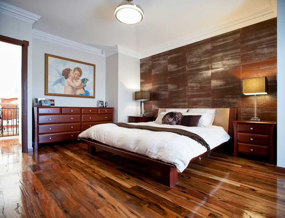 Ламинат на стене в спальне