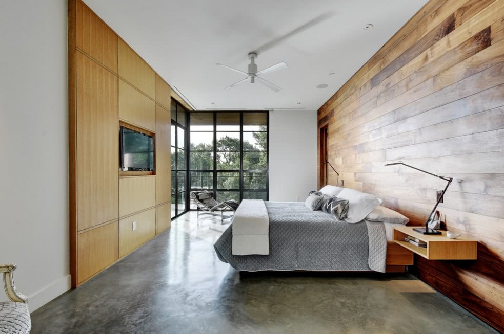 Деревянная отделка всегда ассоциируется с теплом, уютом и домашним очагом. Поэтому в спальне такие элегантные натуральные материалы как нельзя кстати.