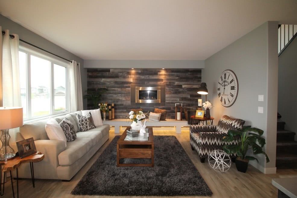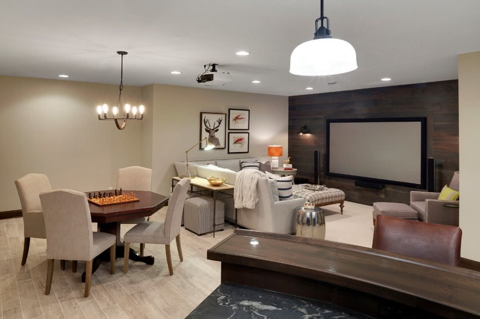 Светлый серый – это распространенный ламинат в интерьере, цвета которого варьируются от грязно-белого до пыльного. Непритязательный вариант скрывает дефекты помещения, визуально корректирует ширину комнаты. Расставить акценты в пространстве помогут нижние светильники, желтые аксессуары и мебель натурального (коричневого, бежевого) цвета. Осторожнее стоит использовать агрессивный красный.