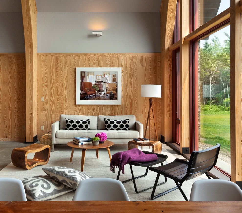 Если квадратура вашего помещения никаких положительных эмоций не вызывает, то такая отделка отлично впишется в ваш интерьер и даже сделает его заметно просторнее. Правда, вопросы по высоте помещения все равно останутся: к сожалению, горизонтальное оформление стен ламинатом здорово работает только на визуальное расширение пространства в ширину. Как же быть, если нельзя похвастаться и должной высотой потолков? Подсказываем вам замечательное решение — завершить отделку на один или два панельных ряда ниже уровня потолка. Это позволит обмануть наше зрение и хоть на немного, но все же поднять потолок вверх при беглом восприятии.