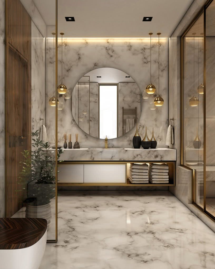 Освещение ванной комнаты может быть достаточно сложным и для него могут применяться различные типы светильников в зависимости от площади помещения и его дизайна.