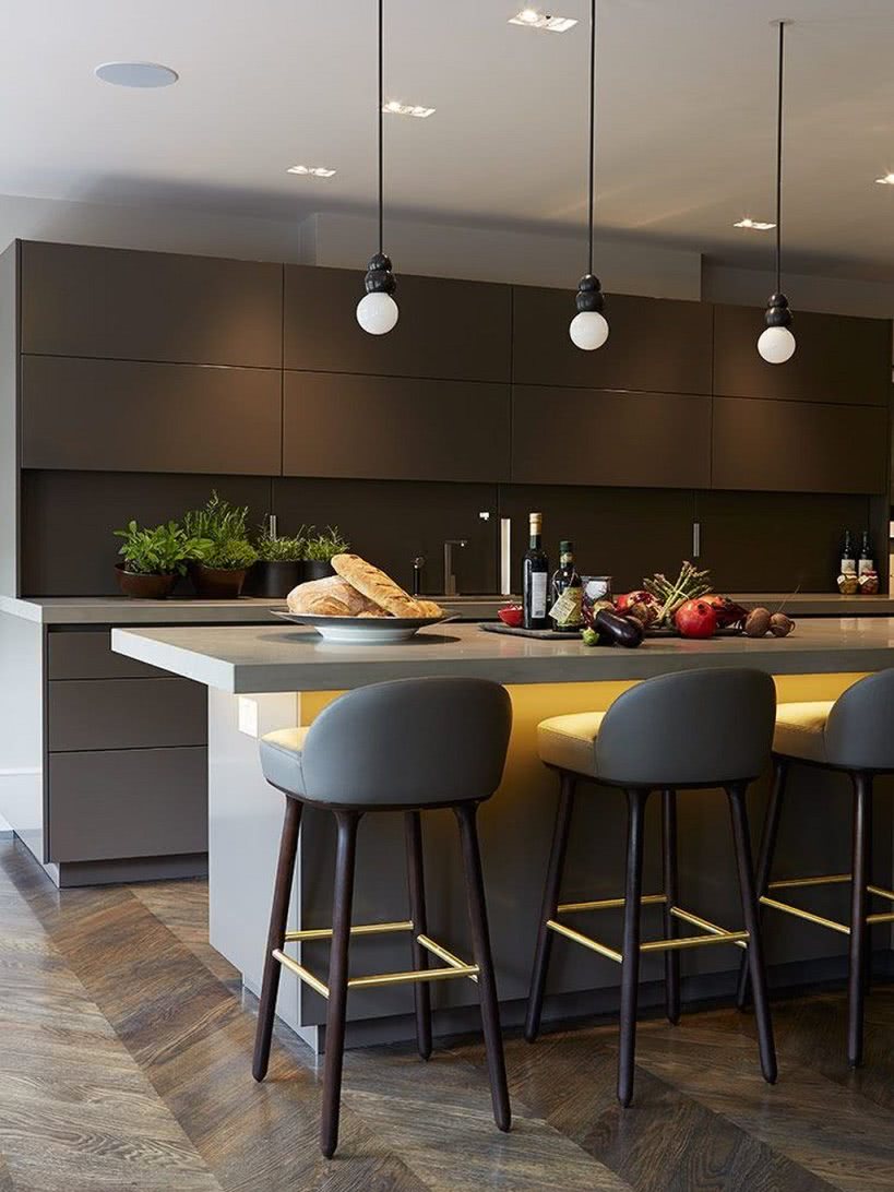 В зоне кухни важно не только окружающее освещение, но и подсветка рабочих поверхностей и столовой группы. Для этих целей подойдут плафоны, бра, встроенные светильники