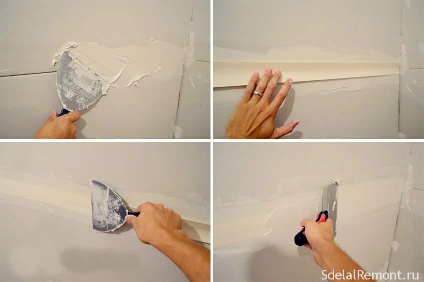 Если просто прошпаклевать пространство без дополнительного армирования, то вследствие температурных деформаций штукатурка в месте касания листов треснет, и со временем эти трещины будут расширяться, сведя на нет все вложенные усилия по ремонту окончательно.