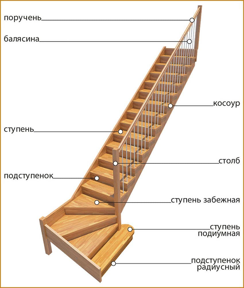 В конструкции будущей лестнице могут присутствовать: