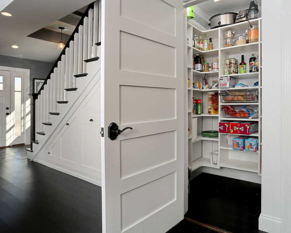 Кладовая. Рекомендуется нишу сделать закрытой и помещать в нее предметы, использующиеся редко. Для мелких деталей сделайте полочки. Отличный способ организовать хранение вещей, которым не нашлось места в основной части дома.