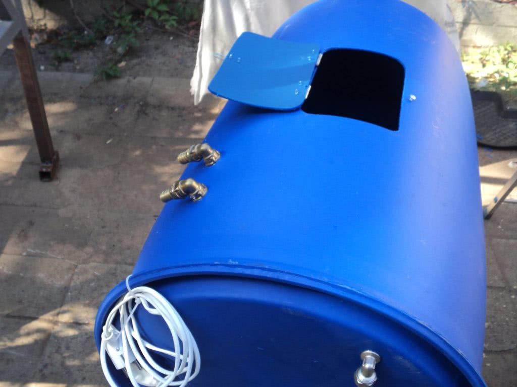Например, пластиковый бак для воды относительно недорогой и на рынке много разных размеров и конфигураций. Есть даже пластиковые ёмкости с тэном для подогрева воды от электрической энергии. К тому же, пластик не подвержен гниению. Но у пластика плохая теплопроводность и поэтому вода в таких ёмкостях хуже нагревается от солнечных лучей, чем в металлических. По этой причине чаще всего в качестве ёмкости для воды выбирают металлические бочки.
