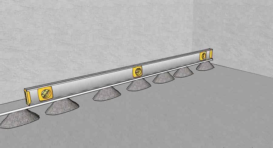 В качестве направляющих для полусухой основы удобно использовать раствор цемента. Подготовка направляющих не представляет сложности: