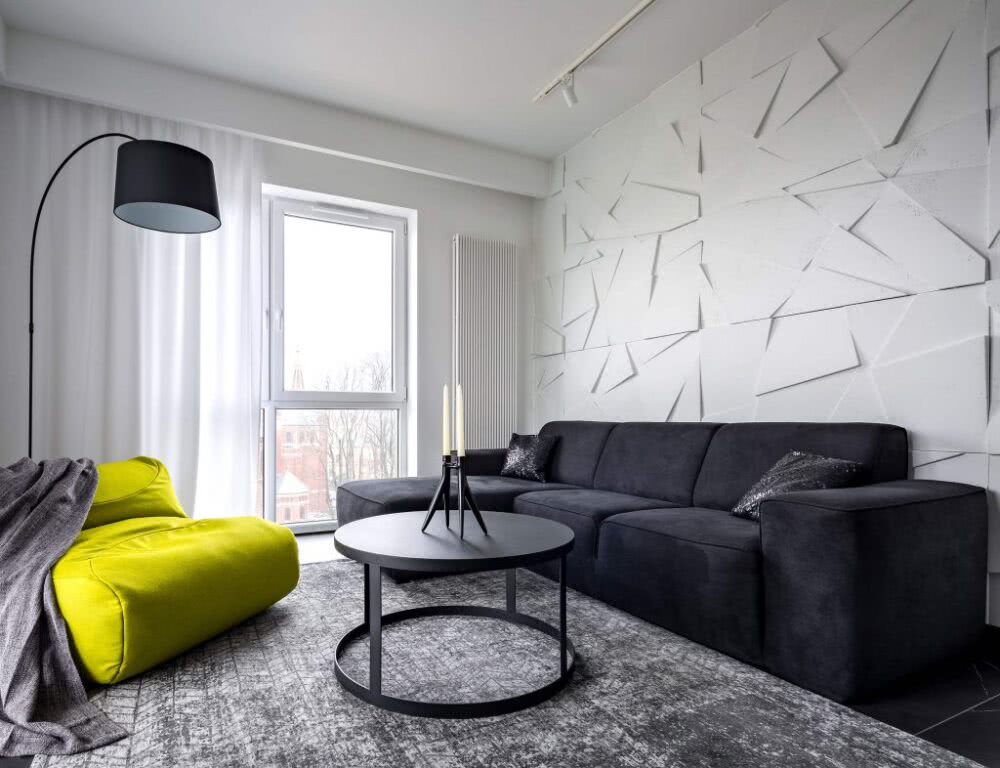За современный характер панелей ответственна их геометрическая форма. Кроме того, если планируете такое оформление интерьера, лучше выбирать сильные, модные цвета. В случае светлых тонов разница в фактуре отделки будет ключевой — панели с тиснением на фоне гладких стен и наложенные друг на друга простые предметы мебели. Они создают простую геометрию и контрастируют с интерьером. Однако вы должны использовать их в умеренных количествах, чтобы они не перегружали весь декор на небольшой площади.