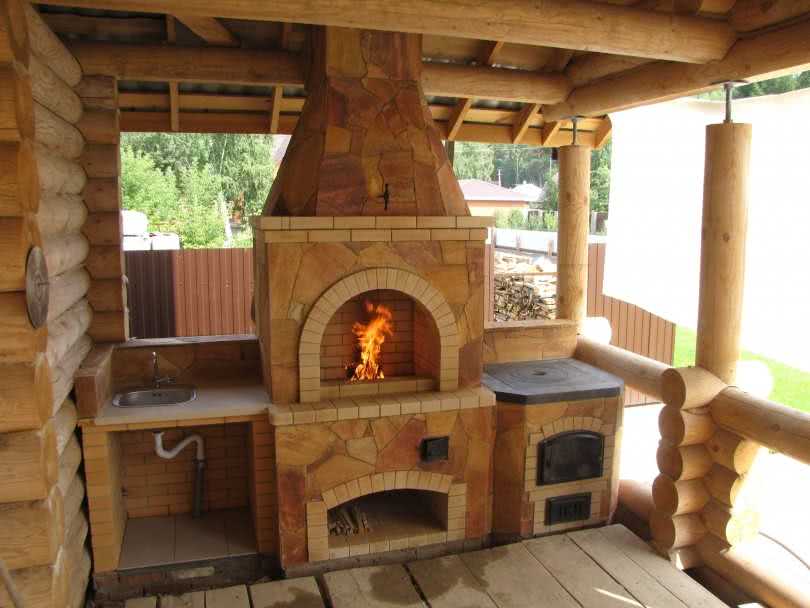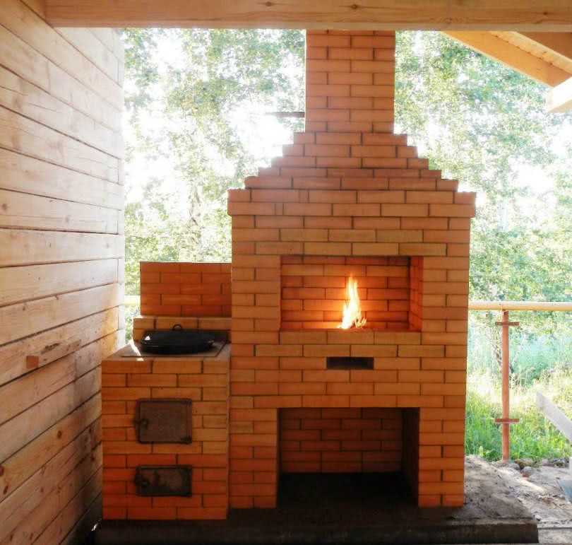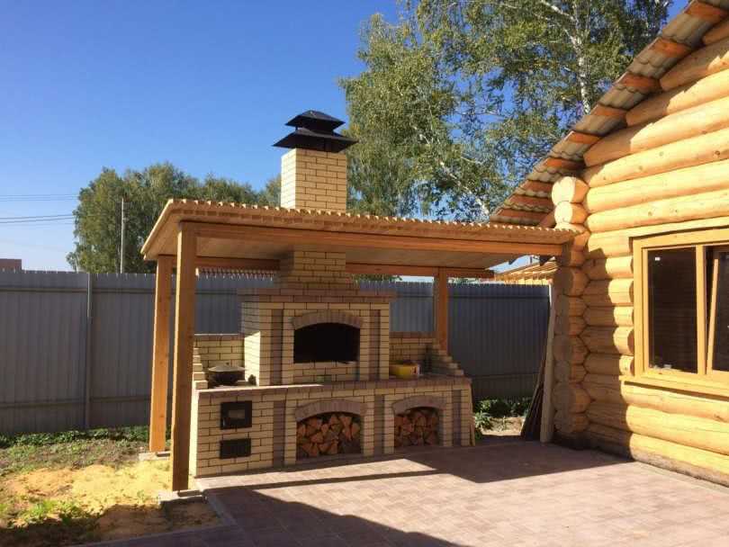 Если за основу брать конструкцию с дымоходом, то ее можно расположить, как на открытом воздухе, так и под навесом, а то и в беседке.
