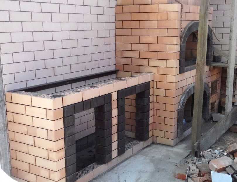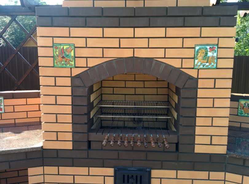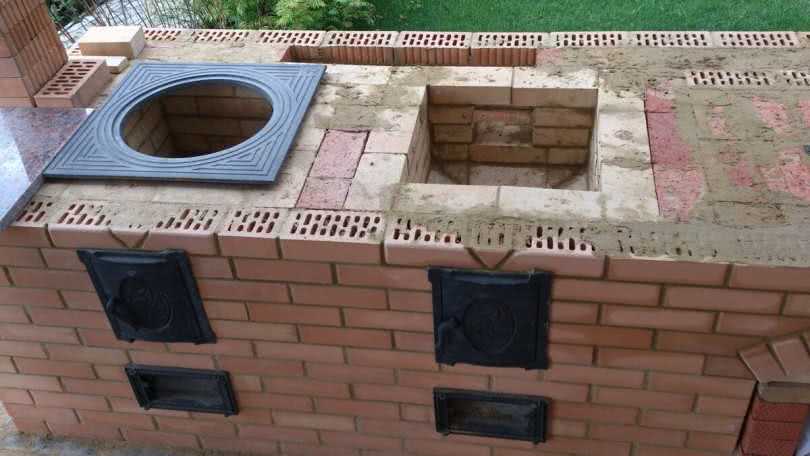 Тесты показали, что воздуха мангал получает достаточно, несмотря на закрытую конструкциюКирпич обычный, облицовочный.