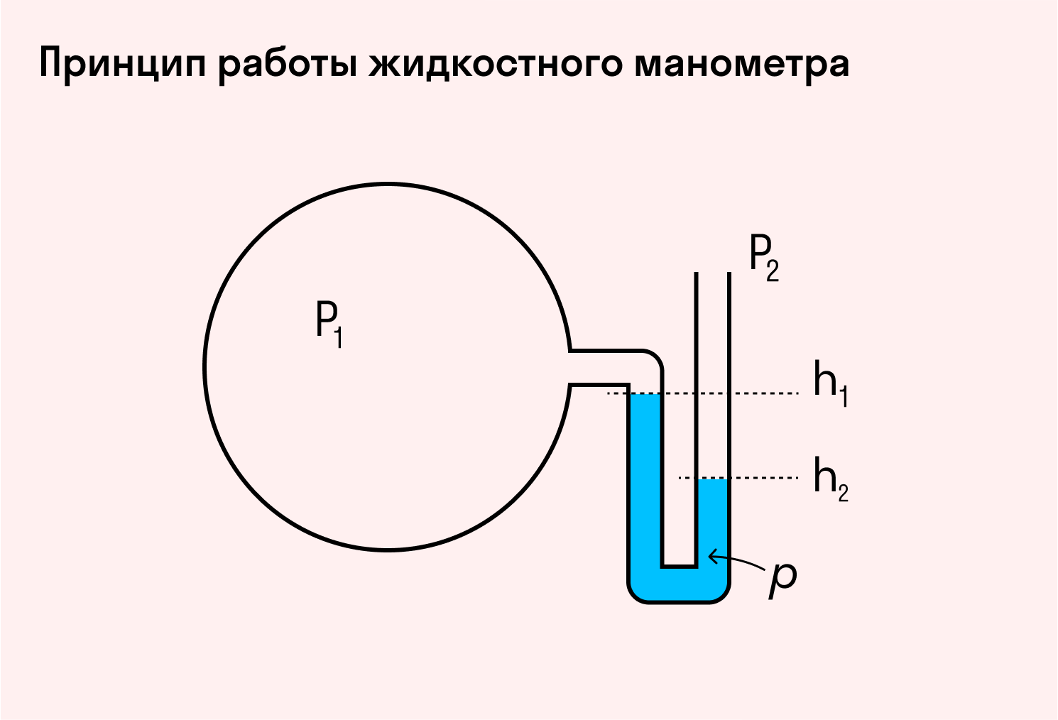 Измерив разность высоты столба Δh = h1 − h2, можно узнать, насколько изменилось давление ΔP = P1 − P2.