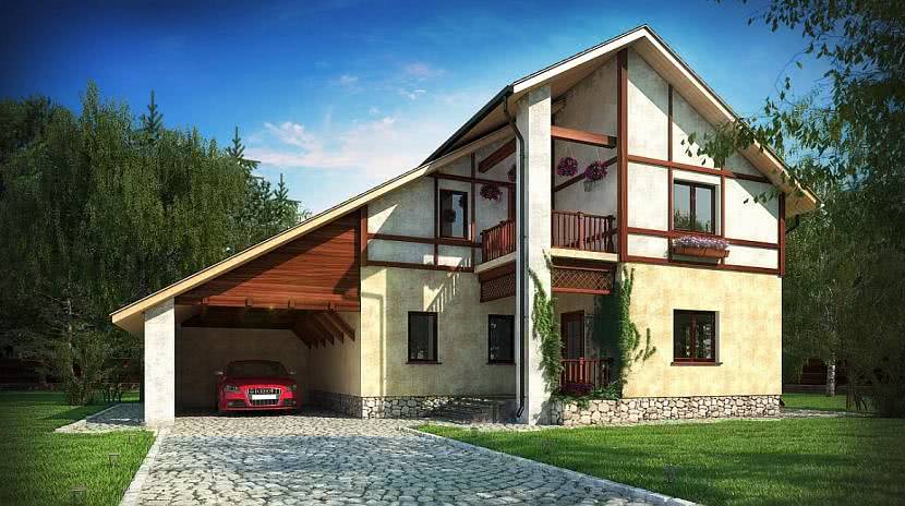 Благодаря такому смещению можно сделать навес, в котором можно расположить все, что угодно, от террасы до гаража.