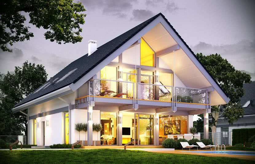 В проектировании современных загородных коттеджей используются более сложные архитектурные решения: