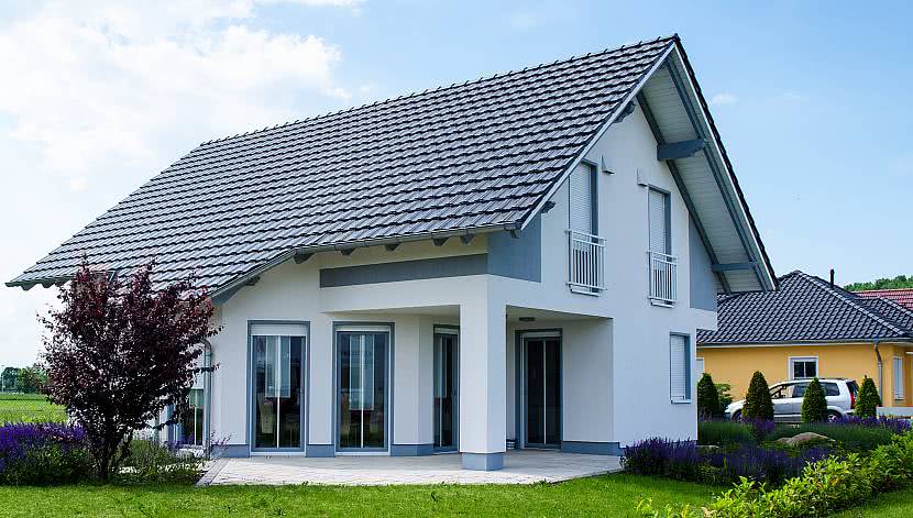 Двускатная крыша часто встречается на фото частных домов, возведенных в традиционном стиле. Такая кровля представляет собой два пересекающихся прямоугольника. У нее несложная конструкция, вместе с тем проект смотрится аккуратно и мило.