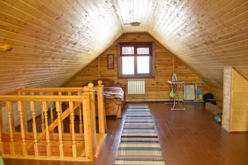 - Обустроенный мансардный этаж является отличным местом для комфортного отдыха.