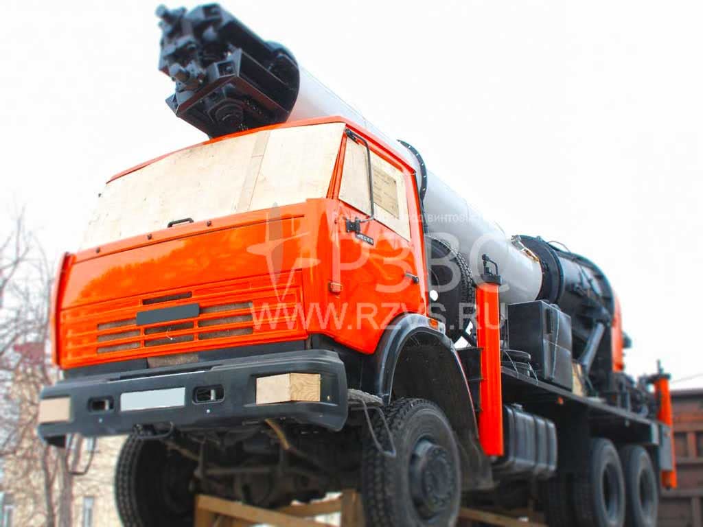 Более сложной является установка для закручивания винтовых свай. Она применяется для монтажа винтовых свай диаметром более 108 мм и длиной более 2,5 метров. Установка состоит из платформы (базовый автомобиль, гусеничное или колесное шасси) на которой размещается основное оборудование, опорных домкратов, гидравлической системы, рабочего органа, привода вращения и наклона, рычагов и пульта управления, а также вспомогательных деталей. С помощью такой установки винтовая свая втягивается внутрь рабочего органа, укрепленного шарнирным способом на раме. Боковые редукторы обеспечивают необходимый угол погружения винтовой сваи. Далее происходит само вращение (ввинчивание) сваи. При этом на нее воздействует и осевая нагрузка.