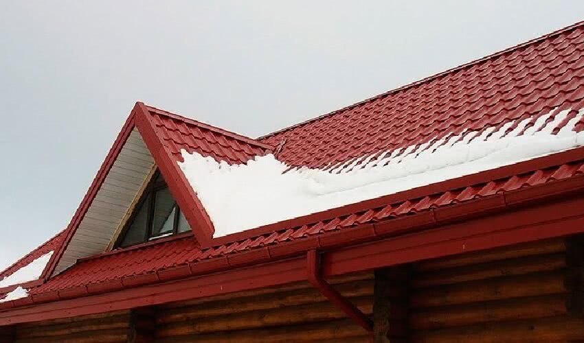 Стоит отметить, что металлочерепичную кровлю с минимальным углом наклона можно использовать лишь в определенных климатических условиях, то есть, в регионах, где не выпадает большого количества дождя и снега. Малый угол уклона позволяет крыше прекрасно противостоять ветровым нагрузкам, но значительно увеличивает снеговые нагрузки, так как снег не скатывается под собственным весом.